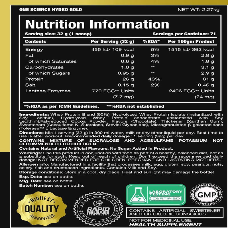 One Science Hydro Gold Hydrolyzed Whey Isolate