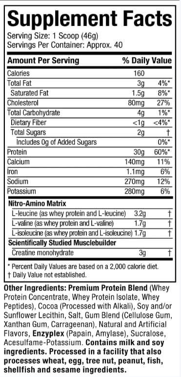 High-Quality Protein Blend: NitroTech combines whey protein isolate, peptides, and other high-quality protein sources that support lean muscle growth and fast recovery.